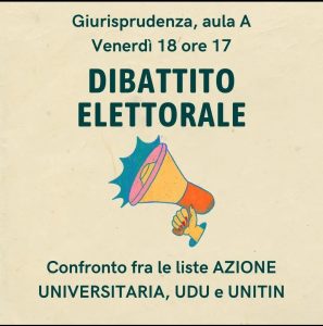 Il confronto regolamentato, misurato e moderato fra rappresentanti di Azione Universitaria, UDU e Unitin aiuterà gli studenti e le studentesse a ponderare idee e proposte nella maniera più obiettiva possibile – senza interferenze o disordini – e a effettuare la più libera delle scelte in cabina elettorale.